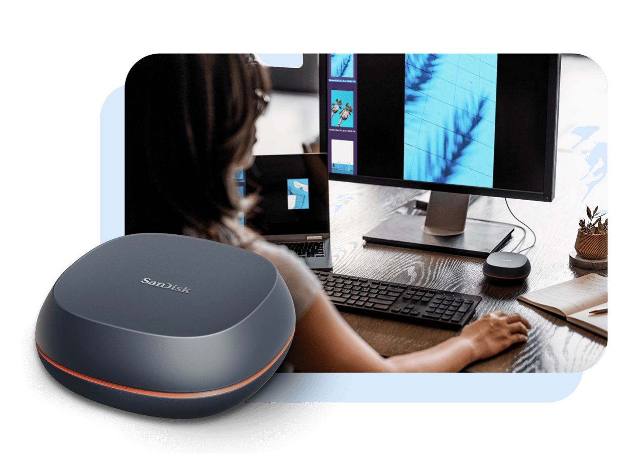 Powerful flash-based storage for home backup, professional workflows, and gaming — all via Thunderbolt or USB, plus AC power.
