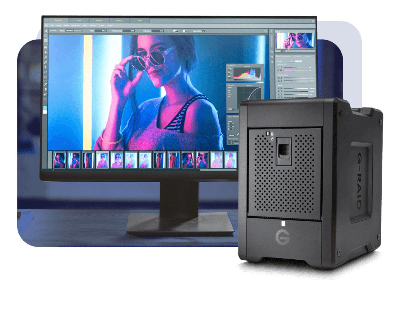 A transportable 8-bay hardware RAID SSD solution with Thunderbolt 3 compatibility offering content professionals massive capacity and high-powered performance.